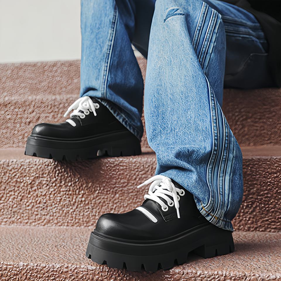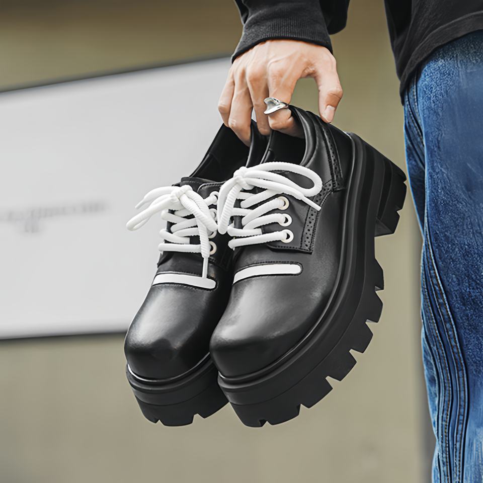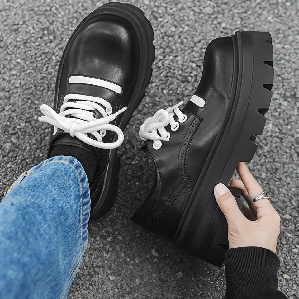รองเท้าหนังอ็อกซ์ฟอร์ดทรงทันสมัยสำหรับฤดูใบไม้ร่วง พื้นหนา หัวมน เพิ่มความสูง ดีไซน์สำหรับธุรกิจ ระบายอากาศได้ดี ทำจากหนังแก้ว
