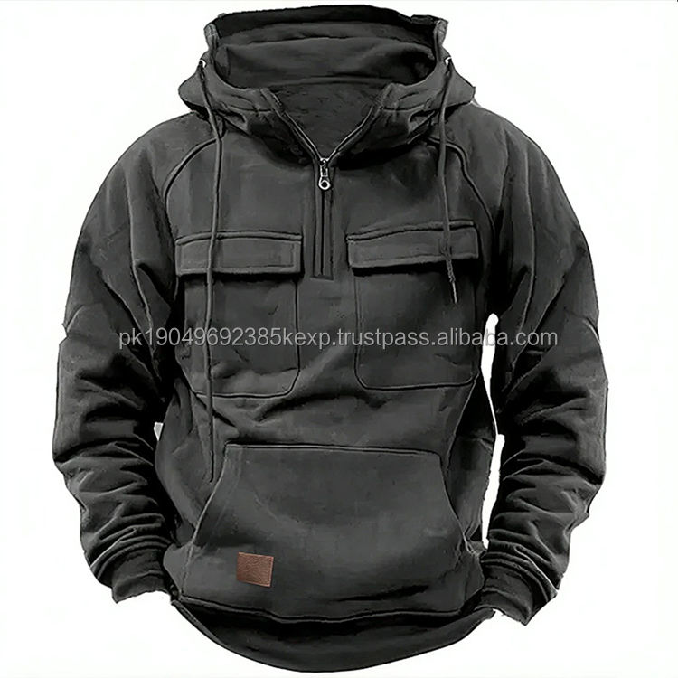 เสื้อฮู้ดดี้ทรงบ็อกซี่สไตล์วินเทจสำหรับฤดูใบไม้ร่วง ผ้าเฟรนช์เทอร์รี่เนื้อหนา สวมใส่สบาย ทรงหลวม มีหลายกระเป๋า เหมาะสำหรับผู้ชาย