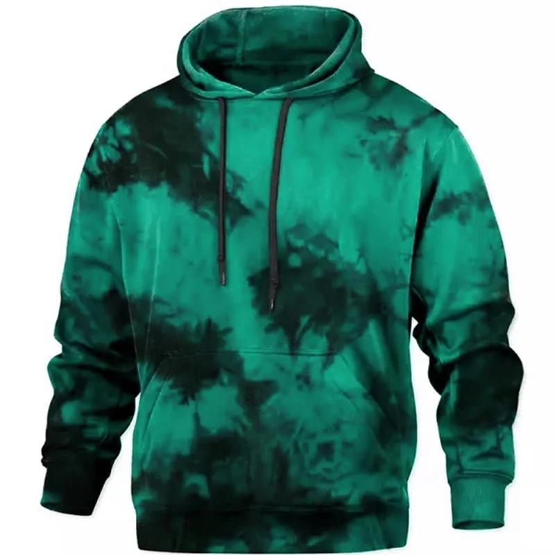 เสื้อฮู้ดมัดย้อมสำหรับผู้ชายเสื้อสเวตเชิ้ตขนแกะทรงหลวมลำลองพิมพ์ลาย3D สไตล์วินเทจทันสมัยแขนยาว
