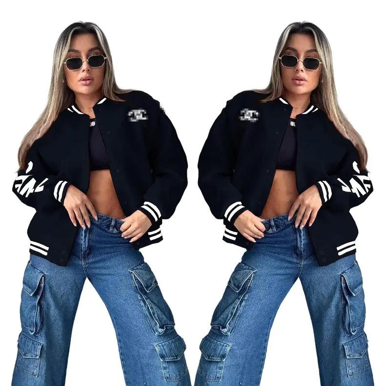 เสื้อแจ็คเก็ตวาร์ซิตี้ผ้าฝ้ายกันลมคุณภาพสูงสำหรับผู้หญิง ฤดูใบไม้ร่วง-ฤดูหนาว 2026 สวมใส่สบาย สไตล์สตรีท ลายเรียบ