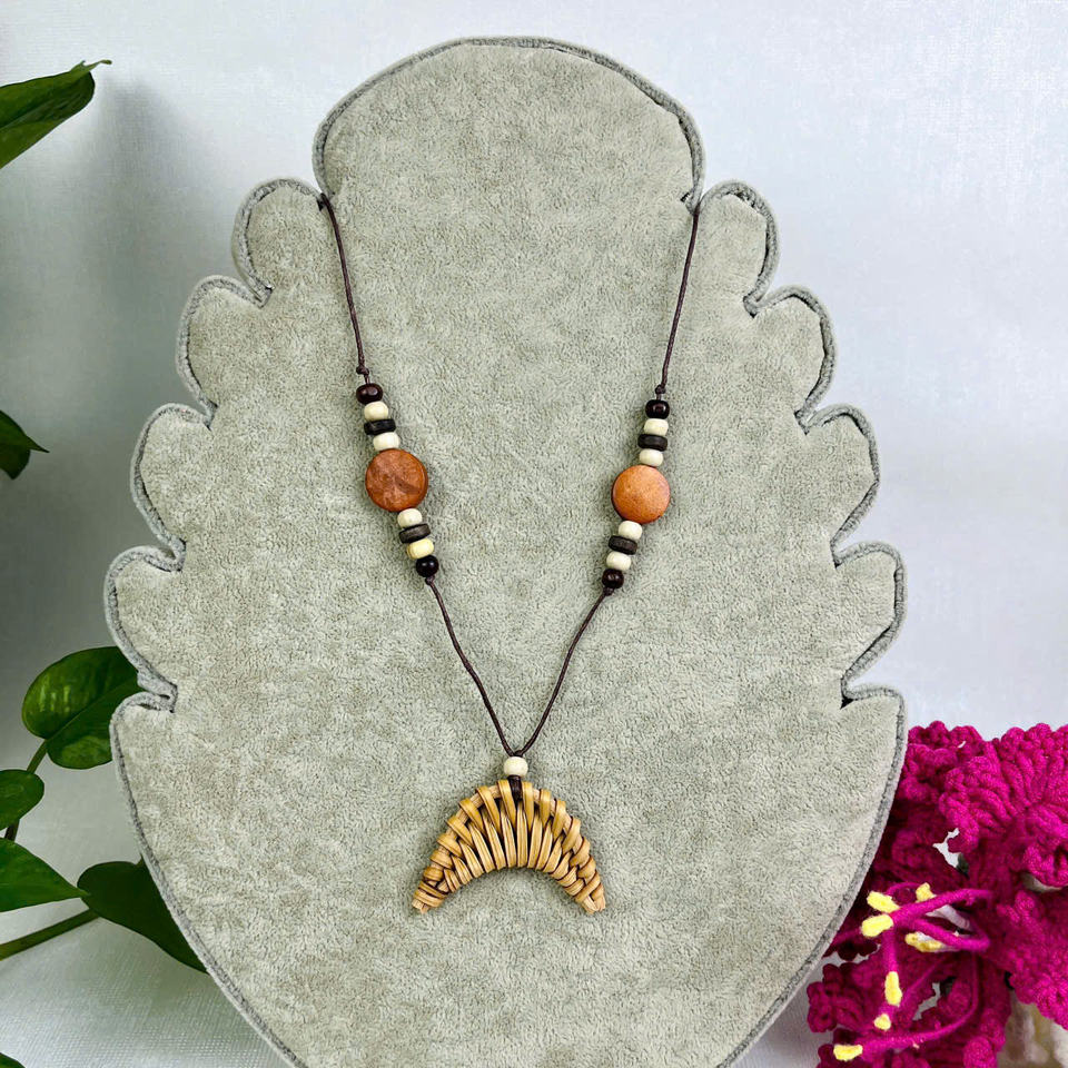 สร้อยคอดีไซน์โบฮีเมียนสำหรับฤดูใบไม้ร่วงฤดูหนาวทำด้วยมือลูกปัดไม้หวายสานดอกไม้หินอาเกตสำหรับวันครบรอบแต่งงาน