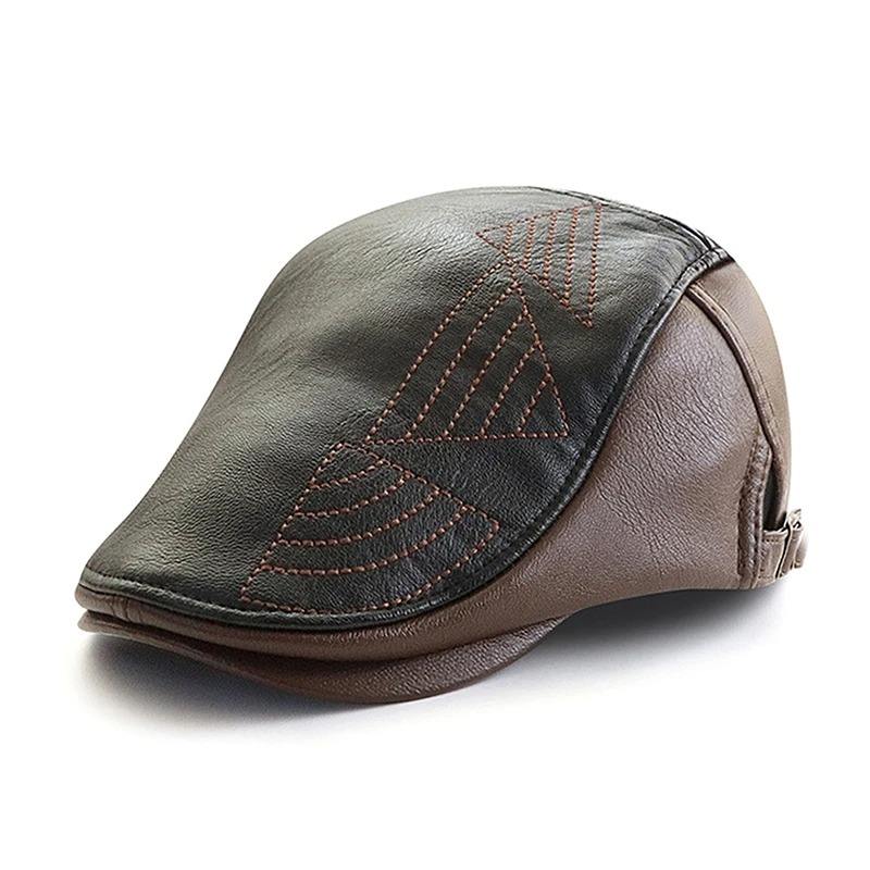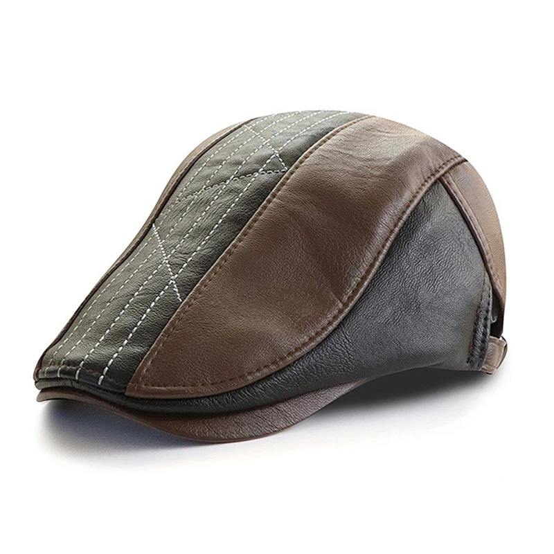 หมวกเบเร่ต์อังกฤษสำหรับผู้ชาย, ใหม่หมวกจิตรกรหนังพร้อมหัวเข็มขัดปรับได้แฟชั่นสำนักงานหมวก