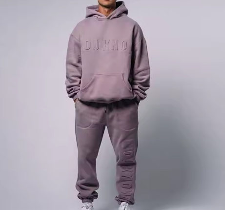 ชุดฮู้ดดี้สองชิ้นผ้าฟลีซเนื้อนุ่มใส่สบายสำหรับฤดูใบไม้ร่วง/ฤดูหนาว ผลิตจากผ้าฝ้าย 100% แห้งเร็ว พิมพ์ลายยางนูน สำหรับผู้ชาย/ผู้หญิง