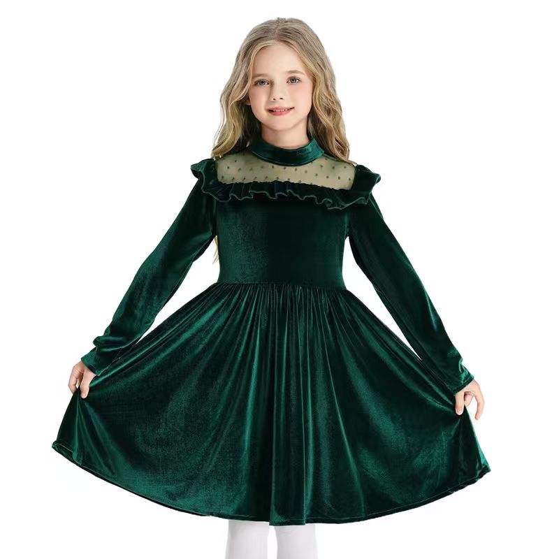 ชุดเดรสกำมะหยี่แขนยาวสไตล์วินเทจสำหรับเด็กผู้หญิงในช่วงฤดูร้อน - ชุดเจ้าหญิงคริสต์มาส