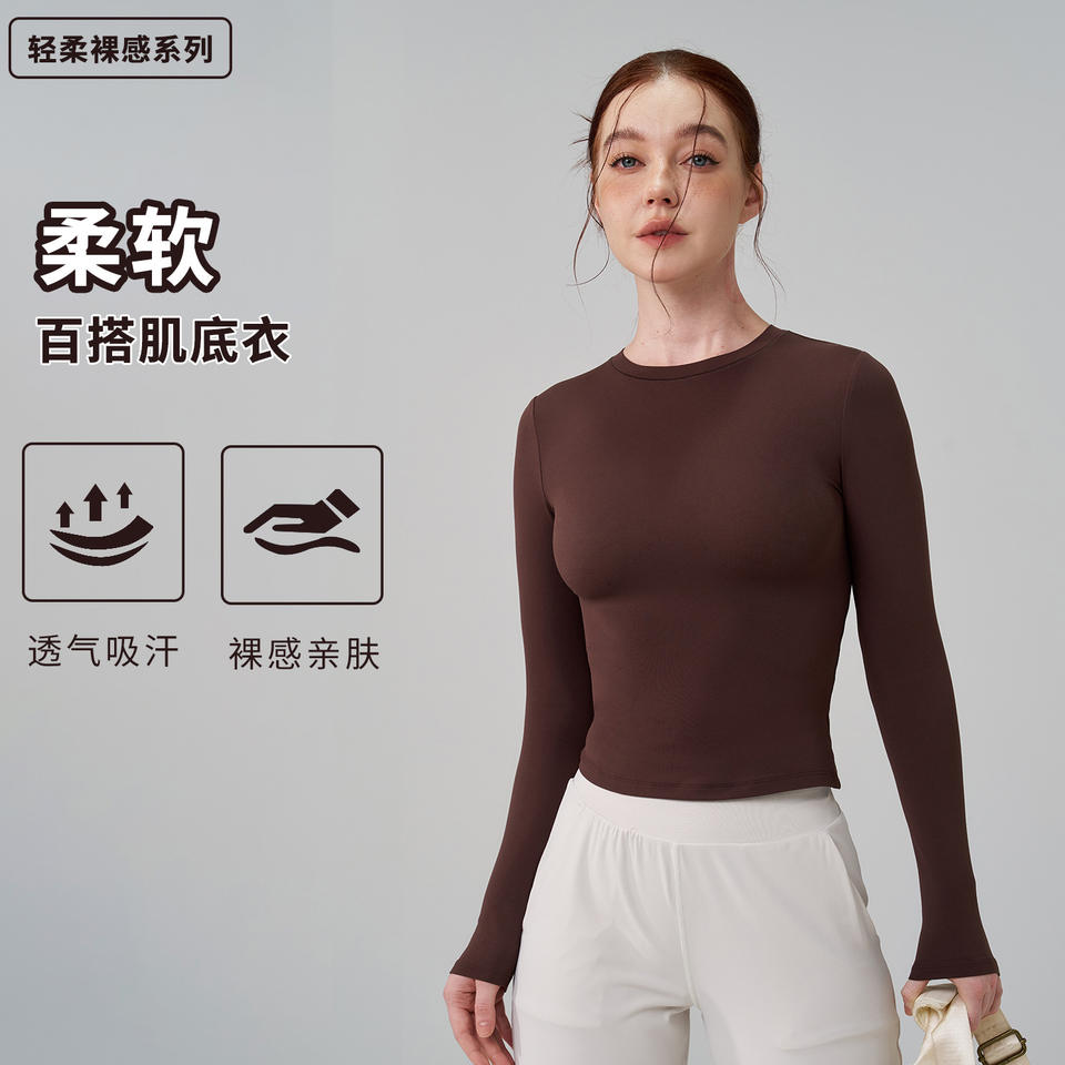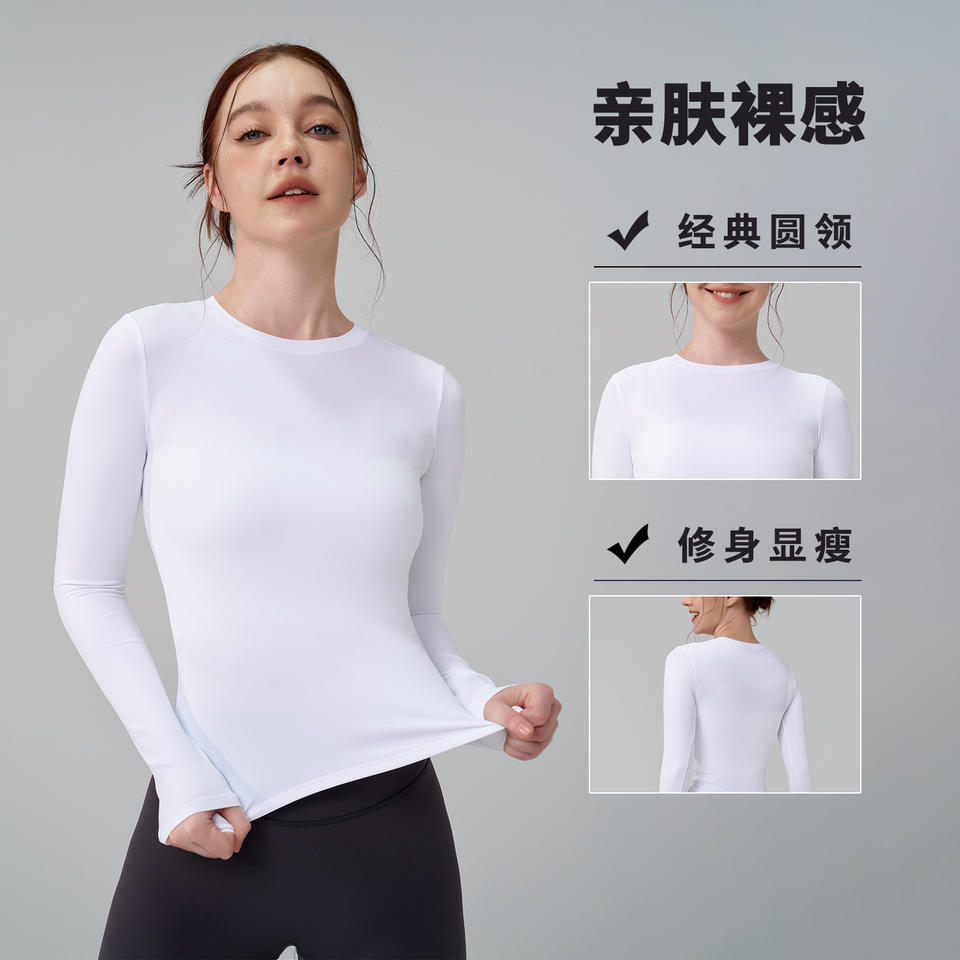 ฤดูใบไม้ร่วงฤดูหนาวคอกลมแขนยาวโยคะท็อปผู้หญิงสีทึบระบายอากาศได้ดียืดหยุ่นสูงฟิตเนสออกกำลังกาย CX59