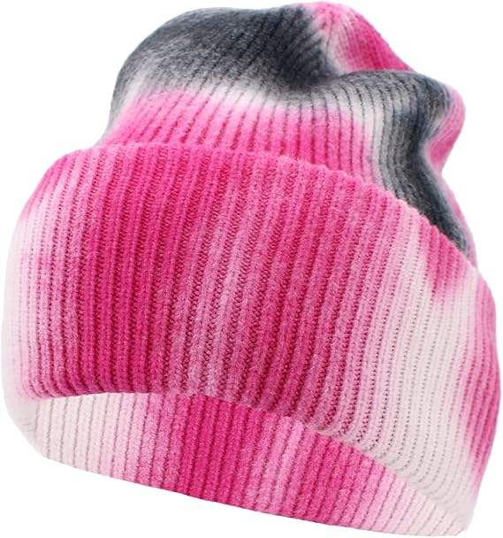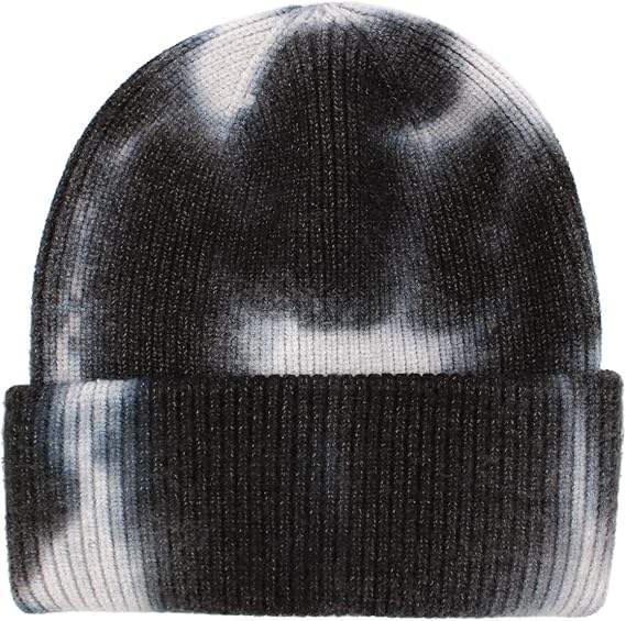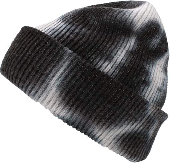 หมวกบีนนี่ลายไท-ไดสีดำเทาเข้มสำหรับผู้ใหญ่ แบบมีขอบยางยืด ผ้าแคชเมียร์ สำหรับฤดูใบไม้ร่วงและฤดูหนาว