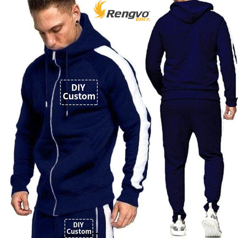 ชุดวอร์มผู้ชายดีไซน์ฤดูใบไม้ร่วงฤดูหนาว ปรับแต่งได้ ไซส์พลัส ระบายเหงื่อ ยืดได้สี่ทิศทาง สไตล์ลำลอง สำหรับเล่นกีฬาและออกกำลังกาย