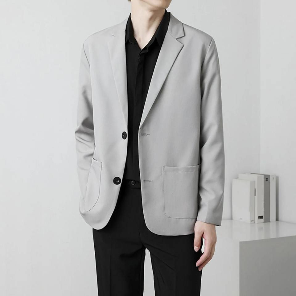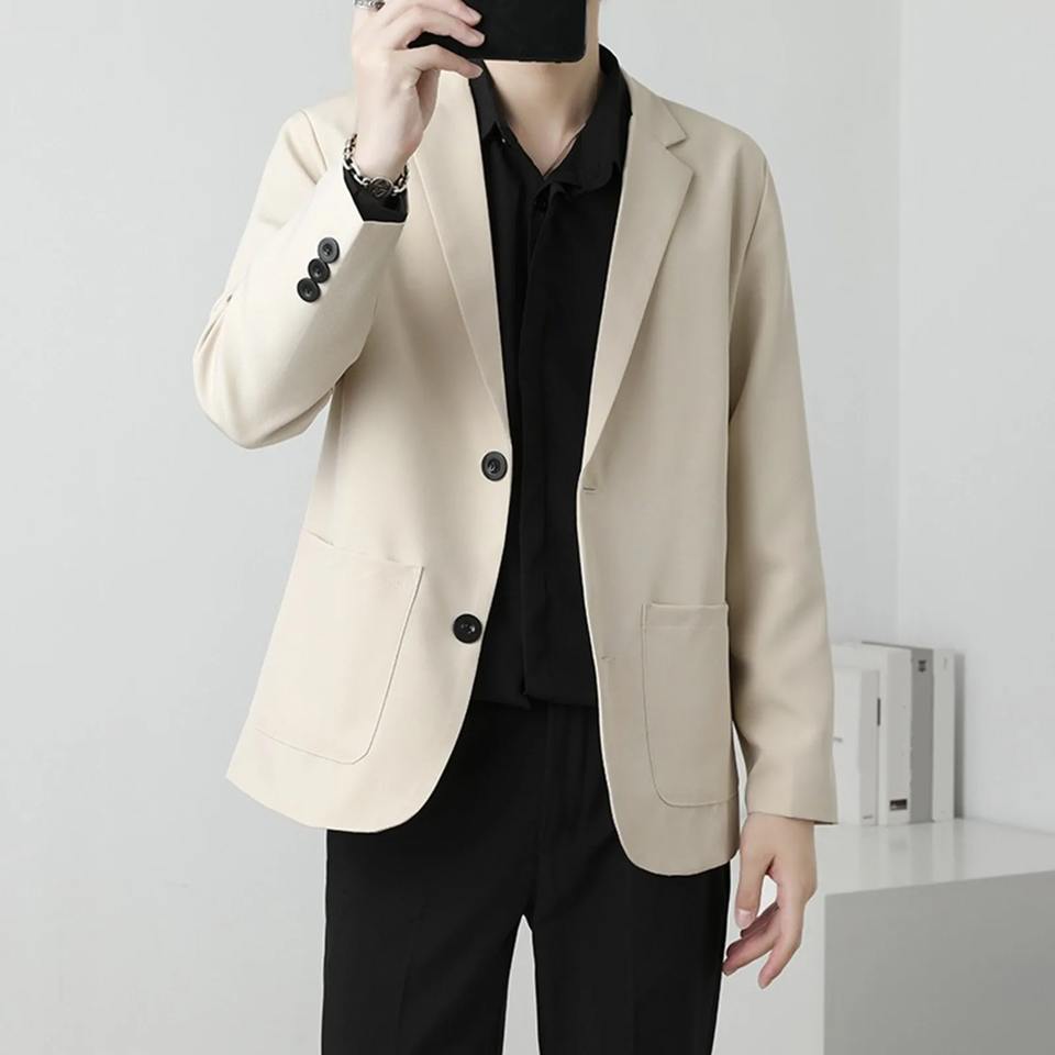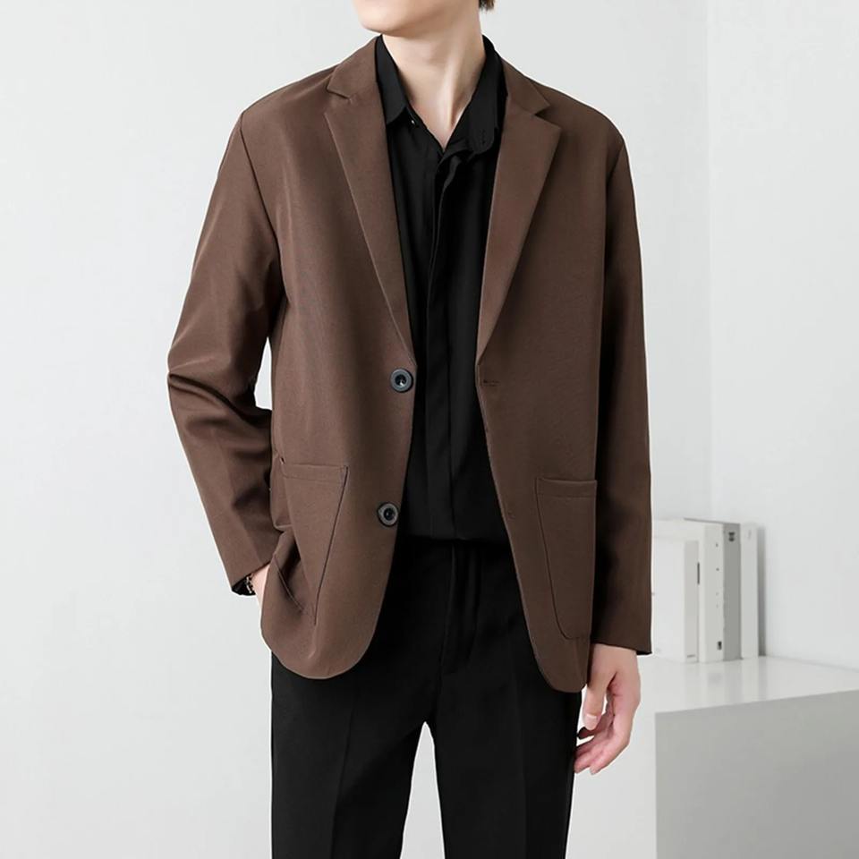เสื้อเบลเซอร์แฟชั่นลำลองทรงสลิมแบบกระดุมสองแถวสำหรับผู้ชาย ชุดลำลองสไตล์สปอร์ตสำหรับฤดูใบไม้ร่วงและฤดูหนาว