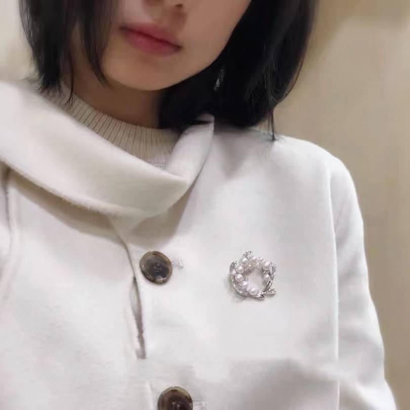 เข็มกลัดแฟชั่นฤดูใบไม้ร่วงฤดูหนาว ยอดนิยม ลายพวงมาลัยดอกไม้ ติดหน้าอก จี้ไข่มุกน้ำจืดธรรมชาติจากจูจี้ ใช้ได้สองแบบ