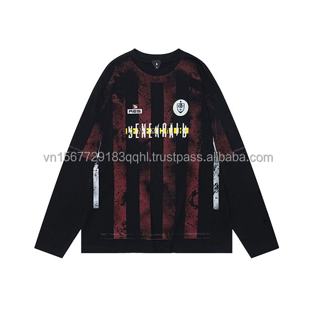 เสื้อยืดแฟชั่นฤดูใบไม้ร่วงฤดูหนาว ลายพิมพ์เรโทร สั้น ทรงสปอร์ต พิมพ์ลายตามสั่ง แบรนด์ทันสมัย ใส่ได้ทุกวัน เหมาะกับกีฬาฟุตบอล สไตล์ลำลอง ผ้าฝ้าย 100% ระบายอากาศได้ดี