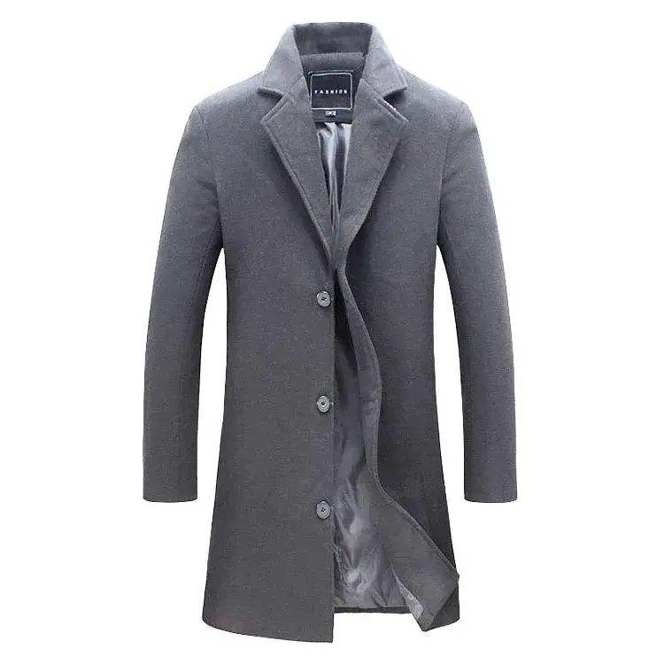เสื้อโค้ทขนสัตว์ผู้ชายแฟชั่นฤดูใบไม้ร่วงฤดูหนาว สีพื้น กระดุมแถวเดียว ทรงยาว สไตล์ลำลอง ไซส์ใหญ่ 9 สี