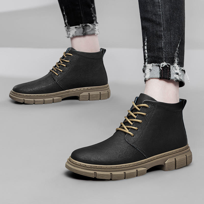 รองเท้าบูทลำลองหนังสไตล์เรโทรแฟชั่นฤดูใบไม้ร่วงฤดูหนาวสำหรับผู้ชาย บุขนแกะ อุ่น ระบายอากาศได้ดี กันลื่น ปิดแบบผูกเชือก