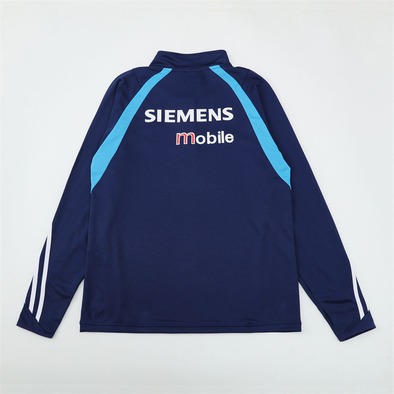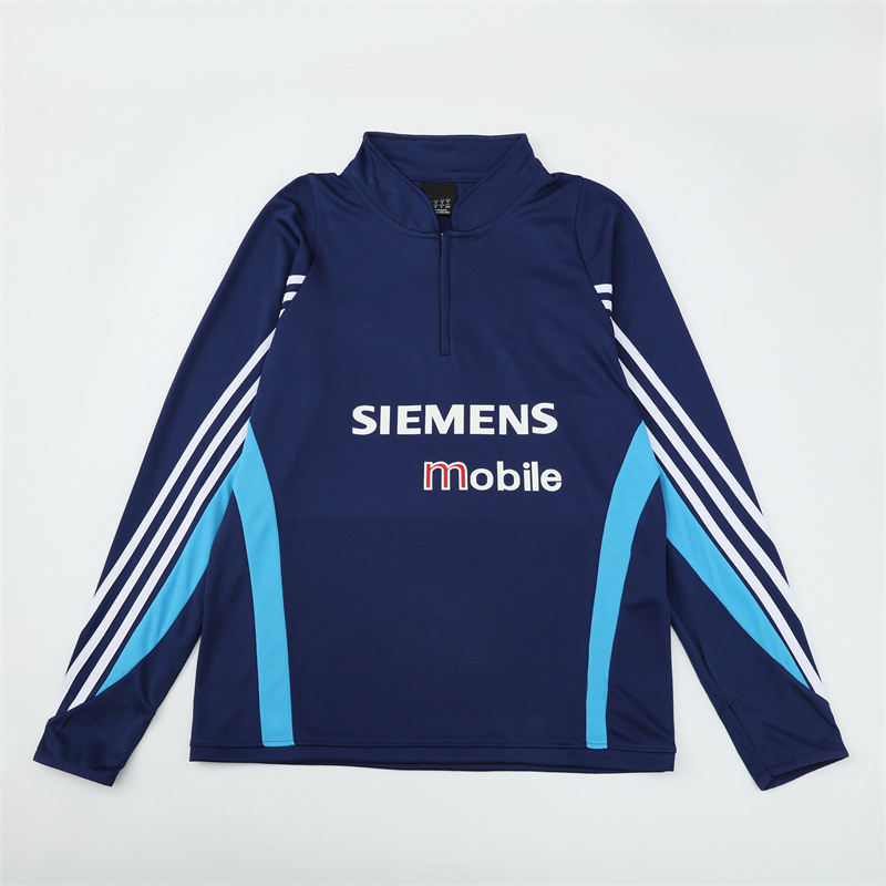 ชุดฝึกซ้อมฟุตบอลแขนสั้นชุดฝึก2003/04ย้อนยุคเสื้อเจอร์ซี่มาดริดเครื่องแบบสโมสรยุโรปฤดูหนาวฤดูใบไม้ร่วง
