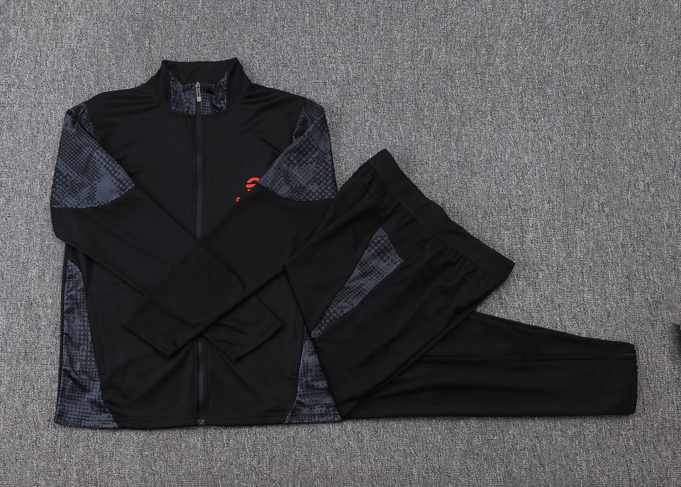 ชุดฝึกซ้อมแขนสั้นแบบซิปเต็มตัวสำหรับฤดูใบไม้ร่วงและฤดูหนาว 25/26 ชุดกีฬามิลาน ชุดแข่งขันสโมสรยุโรป ชุดฟุตบอล