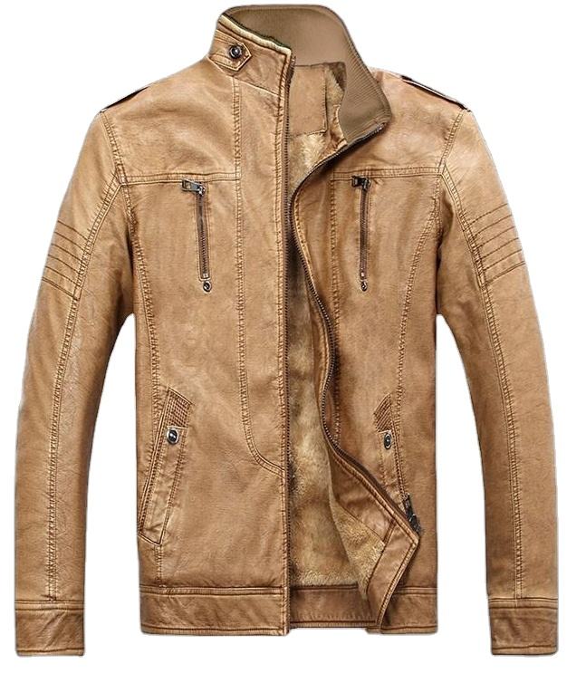 แจ็กเก็ตหนังแกะแท้สำหรับผู้ชายเสื้อแจ็กเก็ตมอเตอร์ไซค์เคลือบซิปหน้าหนาวฤดูใบไม้ร่วง