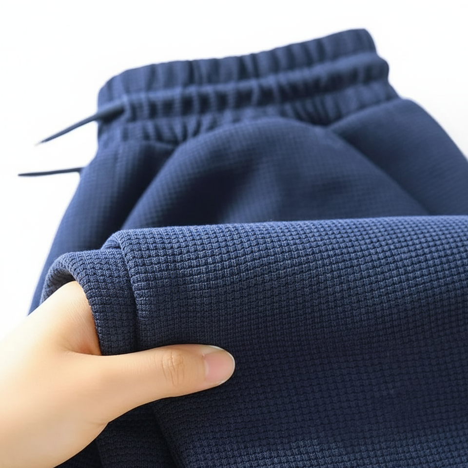 กางเกงลำลองเอวสูงสำหรับผู้ชาย, กางเกงลำลองวาฟเฟิลแบบมีเชือกผูกเอวขนาดกลางทรงหลวมขนาดใหญ่สำหรับฤดูใบไม้ร่วงและฤดูหนาว