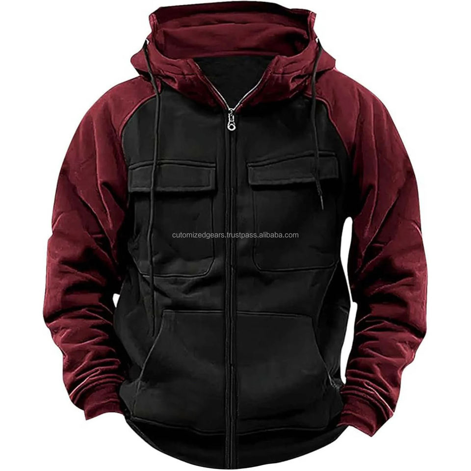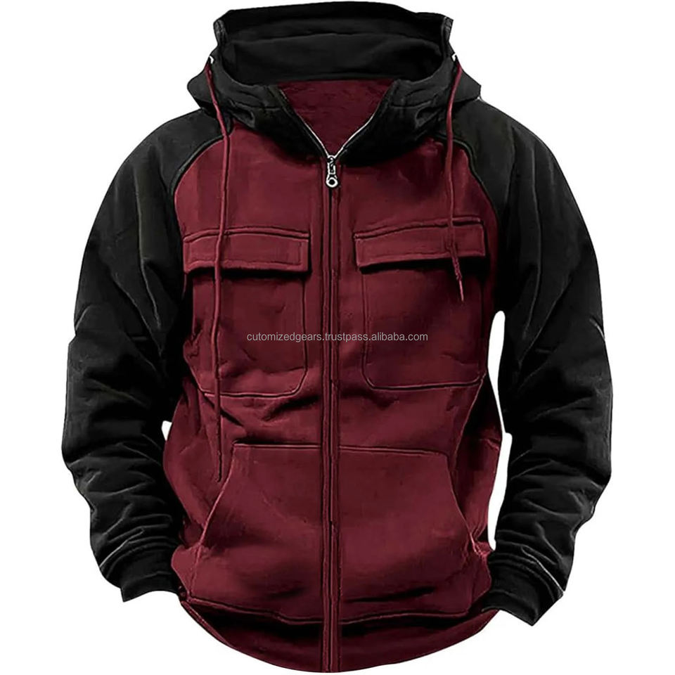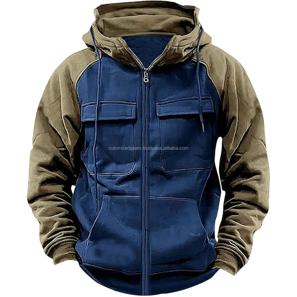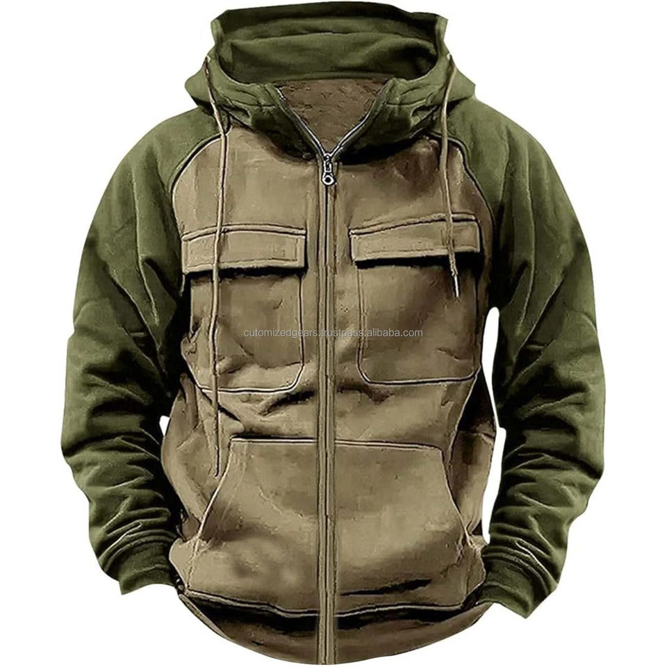 เสื้อฮู้ดมีซิปสำหรับผู้ชาย, เสื้อวอร์มขนแกะมีหลายกระเป๋าแฟชั่นมีฮู้ดหนาสำหรับใส่กลางแจ้งฤดูหนาวฤดูใบไม้ร่วง