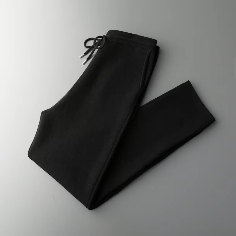 กางเกงขายาวผู้ชายผ้าฝ้ายถักน้ำหนักเบา 100% เอวกลาง ทรงตรง สไตล์ลำลอง แฟชั่น สีพื้น อบอุ่น สำหรับฤดูใบไม้ร่วงและฤดูหนาว ไซส์เล็ก