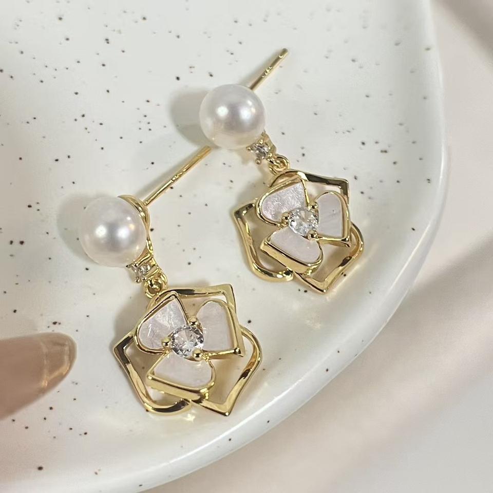 ต่างหูห้อยแฟชั่น ดีไซน์หรูหรา ประดับมุกแบน รูปดอกไม้ แนวทะเลลึก ลายดอกฟริทิลลาเรีย ดอกฮวาซาน ดอกคามิลเลีย สำหรับฤดูใบไม้ร่วงและฤดูหนาว