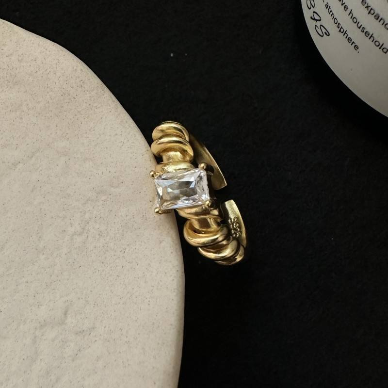 แหวนหรูหราสำหรับฤดูใบไม้ร่วงและฤดูหนาว ทำจากเงินแท้ S925 ลายบิดเกลียวแบบฝรั่งเศสย้อนยุค ดีไซน์เรียบง่ายทรงสี่เหลี่ยม ประดับด้วยเพชรซิркоเนียแบบเปิด