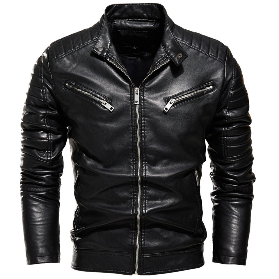 เสื้อแจ็คเก็ตหนัง PU ซิปแบบลำลองสำหรับผู้ชาย ฤดูใบไม้ร่วง ฤดูหนาว เสื้อผ้าผู้ชายทรงเข้ารูป แขนยาว แฟชั่นสำหรับขี่มอเตอร์ไซค์