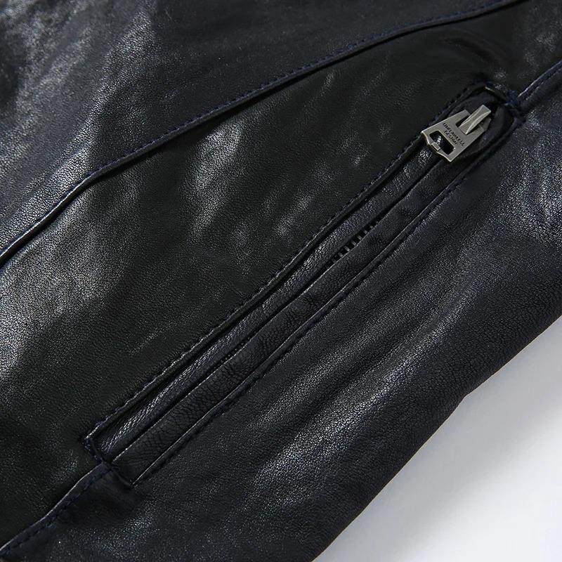 Autumn Winter Men's Genuine Sheep Skin Canvas Motor Jacket Fur Decoration Bomber Coat Biker Fashion Vegetable-Tanned Real