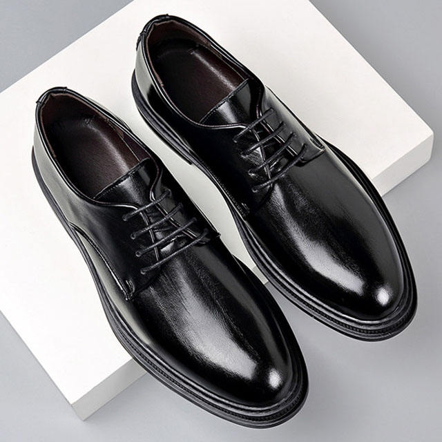 รองเท้าหนังสีดำคุณภาพสูงสำหรับผู้ชาย ฤดูใบไม้ร่วง ฤดูหนาว รองเท้าทางการทรงหัวแหลม ผูกเชือก พื้นรองเท้าหนังนุ่ม เหมาะสำหรับใส่ทำงานและโอกาสต่างๆ