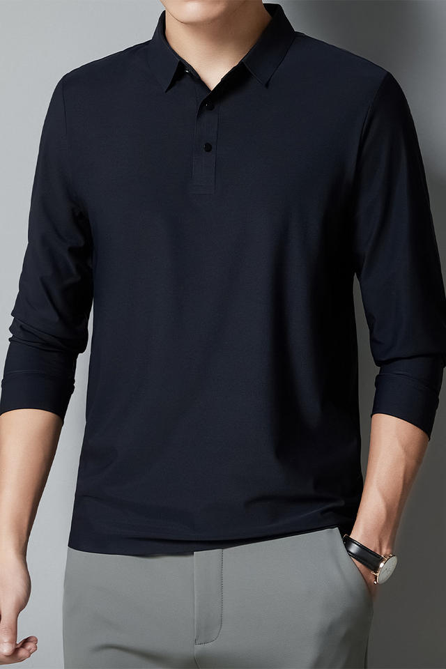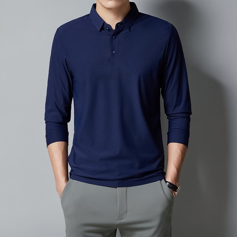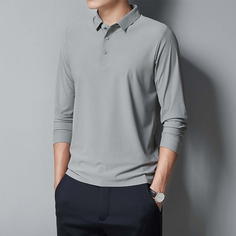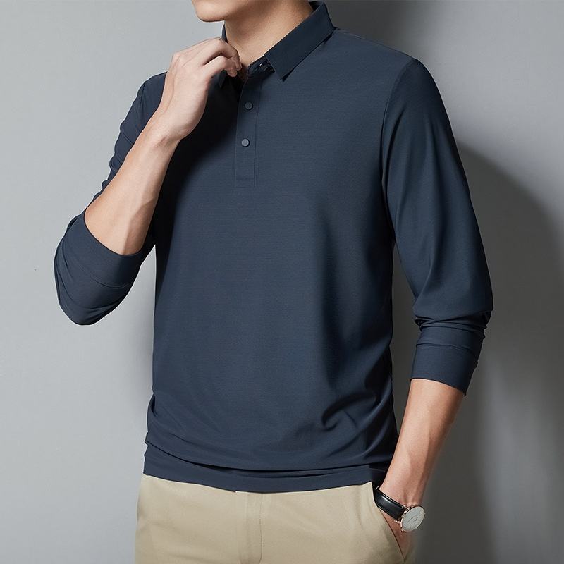 เสื้อโปโลผู้ชายสำหรับฤดูใบไม้ร่วง/ฤดูหนาว ดีไซน์หรูหราสำหรับธุรกิจ ปักลาย 3 มิติ ผ้าถักไร้รอยต่อ แขนยาว สไตล์คลาสสิก ทรงหลวม