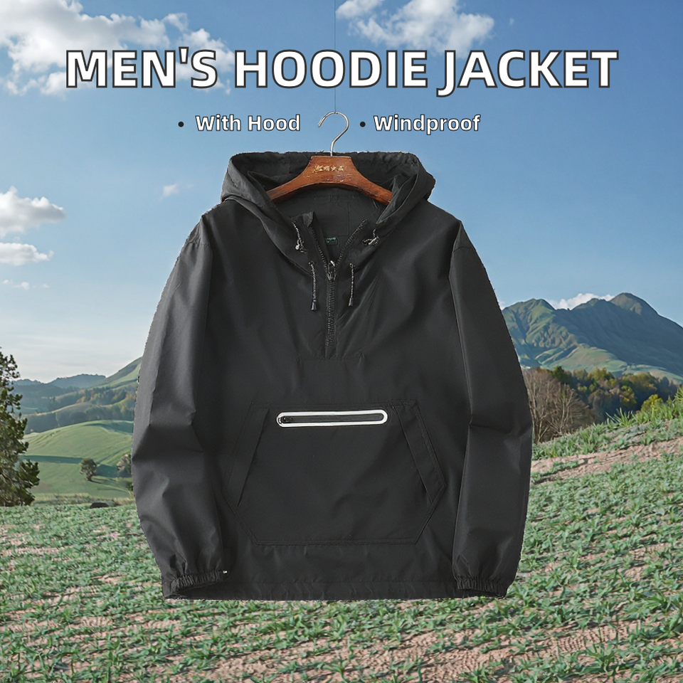 Autumn Winter Men's Plain Dyed Hoodie Overcoat with Zipper Custom Logo Spring Clothing Windbreak Windproof Jacket for Fall