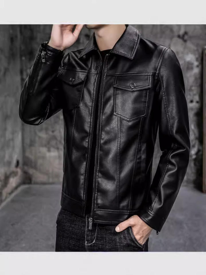แจ็คเก็ตบุผ้าสำหรับผู้ชาย ฤดูใบไม้ร่วง ฤดูหนาว รุ่นใหม่ ทรงเข้ารูป สไตล์เกาหลี แจ็คเก็ตหนัง PU สไตล์ลำลองสำหรับผู้ชาย