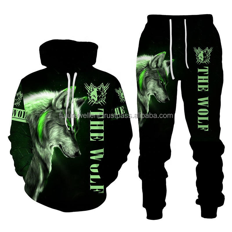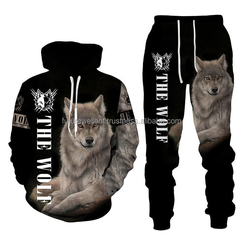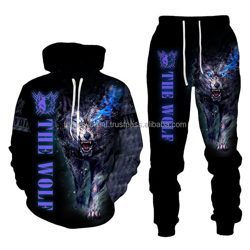 Autumn Winter Men's Sportswear Set Tiger Printed Hooded Tracksuits Comfortable Jogger Suit Casual Sport Wear