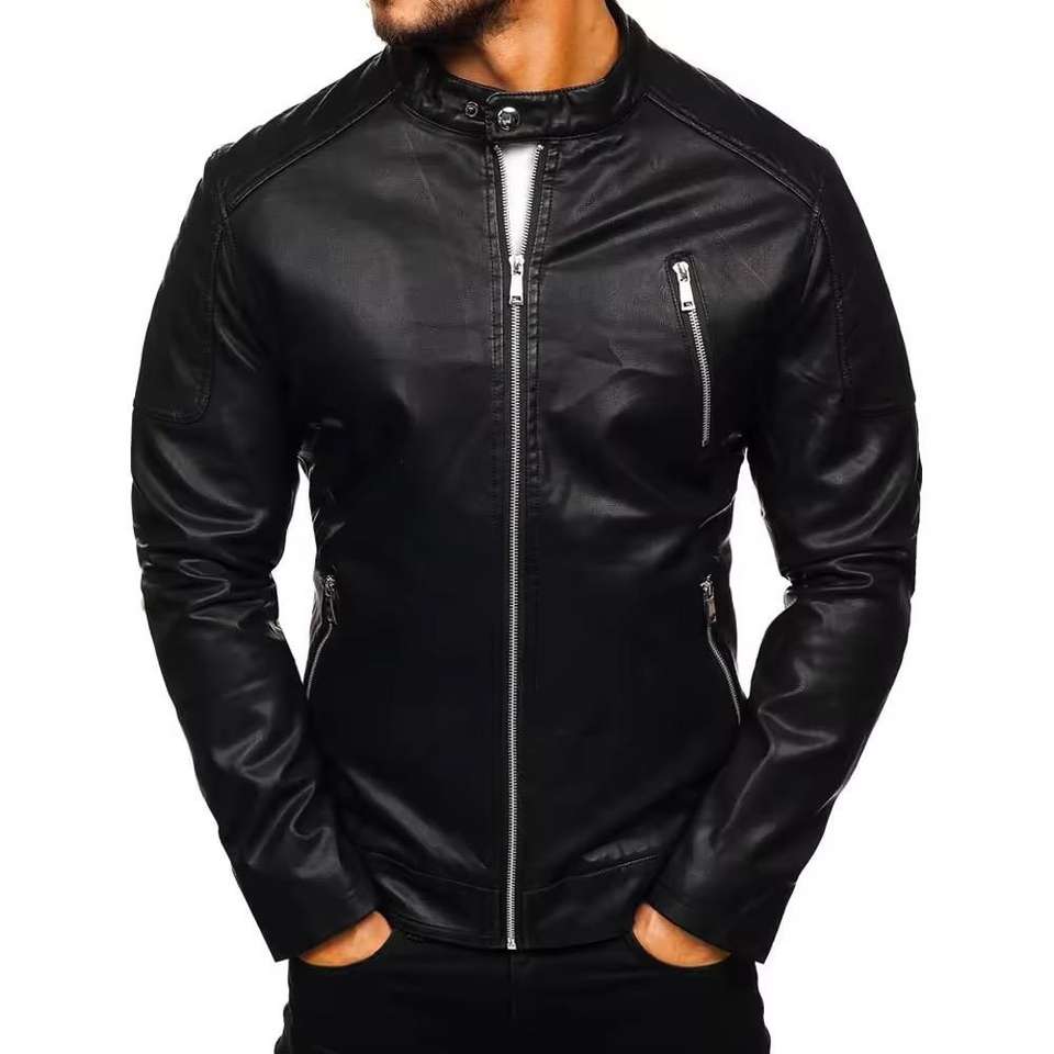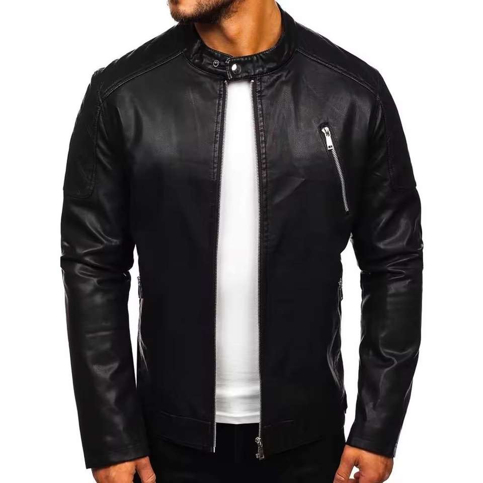 แจ็กเก็ตหนังมีซิปสไตล์สตรีทสำหรับผู้ชายฤดูใบไม้ร่วงฤดูหนาวแจ็คเก็ตหนังแฟชั่นแขนยาวทำจากวัสดุคุณภาพสูง