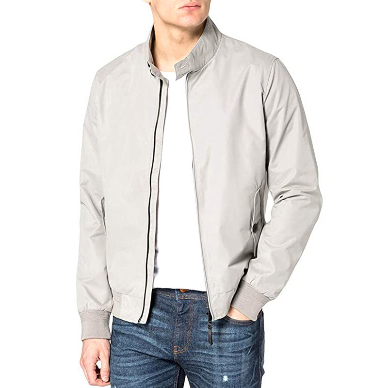 แจ็คเก็ตกันลมสำหรับผู้ชายเสื้อโค้ทแฟชั่นลำลองใหม่มีซิปสีทึบคอตั้ง