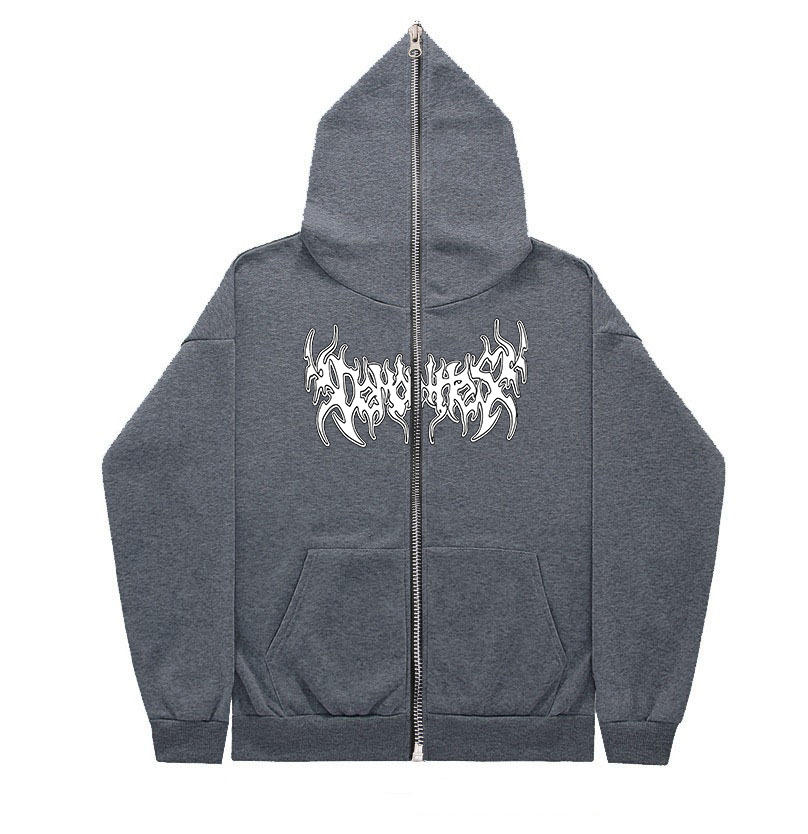 เสื้อกันหนาวมีฮู้ดแบบรูดซิปของผู้ชายเสื้อสเวตเชิ้ตแขนยาวพิมพ์ลายตัวอักษรเสื้อฟลีซไซส์ XS สำหรับฤดูใบไม้ร่วง/ฤดูหนาว