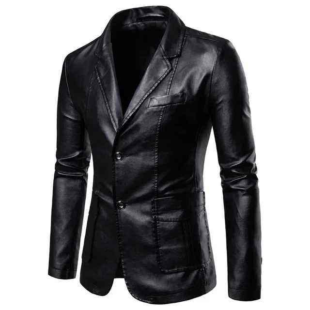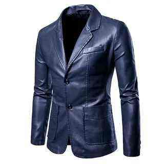 เสื้อเบลเซอร์หนังผู้ชายทรงเข้ารูป คอวี สีพื้น สำหรับฤดูใบไม้ร่วงและฤดูหนาว สไตล์ลำลองทางธุรกิจ ผ้ากันยับ ระบายอากาศได้ดี