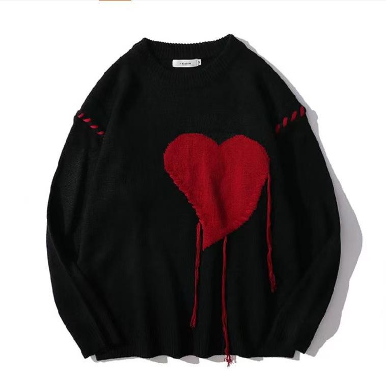 เสื้อสเวตเตอร์ถักแบบสวมศีรษะสำหรับผู้ชายและผู้หญิงเสื้อสเวตเตอร์ถักขนาดใหญ่ลายความรักมาใหม่ฤดูใบไม้ร่วงฤดูหนาว