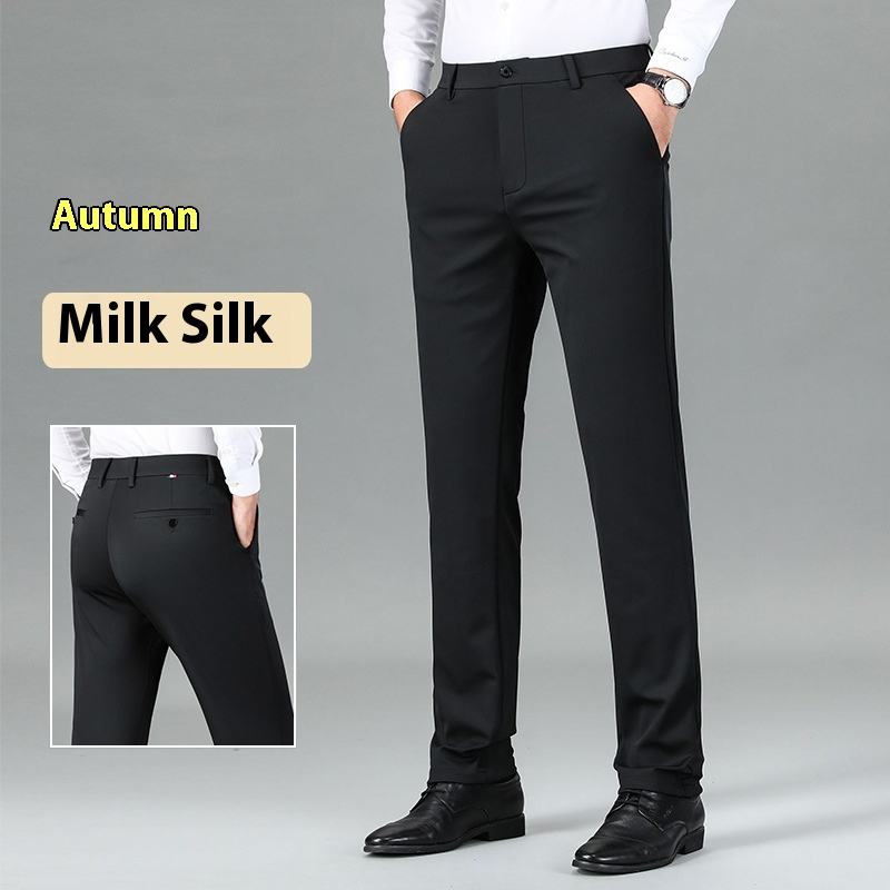 กางเกงผ้ากำมะหยี่สำหรับผู้ชาย, กางเกงแนวธุรกิจกางเกงตรงตรงสูงยืดหยุ่นกางเกงส้นเตี้ยแบบลำลองมาใหม่ฤดูใบไม้ร่วงและฤดูหนาว