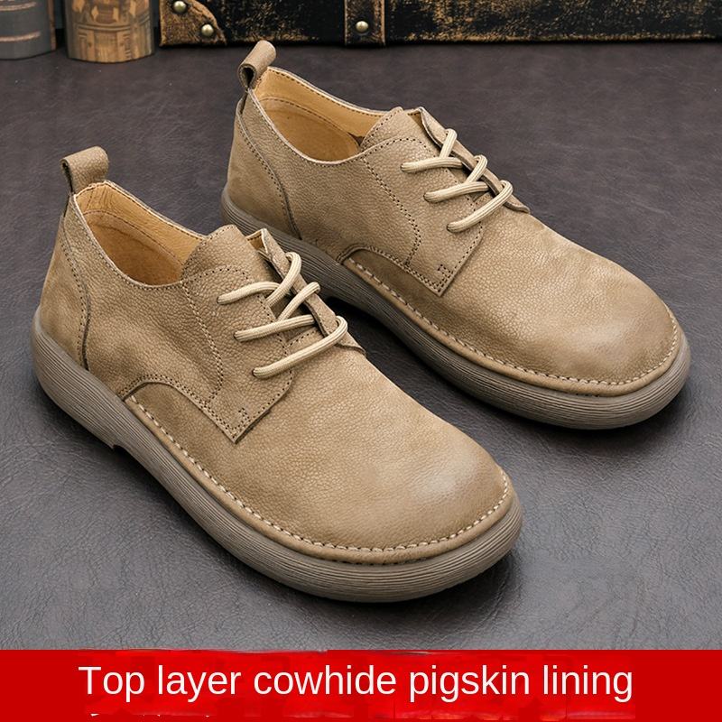 รองเท้าลำลองสไตล์วินเทจสำหรับผู้ชาย รุ่นใหม่ ฤดูใบไม้ร่วง ฤดูใบไม้ผลิ ฤดูหนาว หนังนิ่ม สีพื้น หัวรองเท้าแบบผูกเชือก แฟชั่นอินเทรนด์สไตล์อังกฤษ