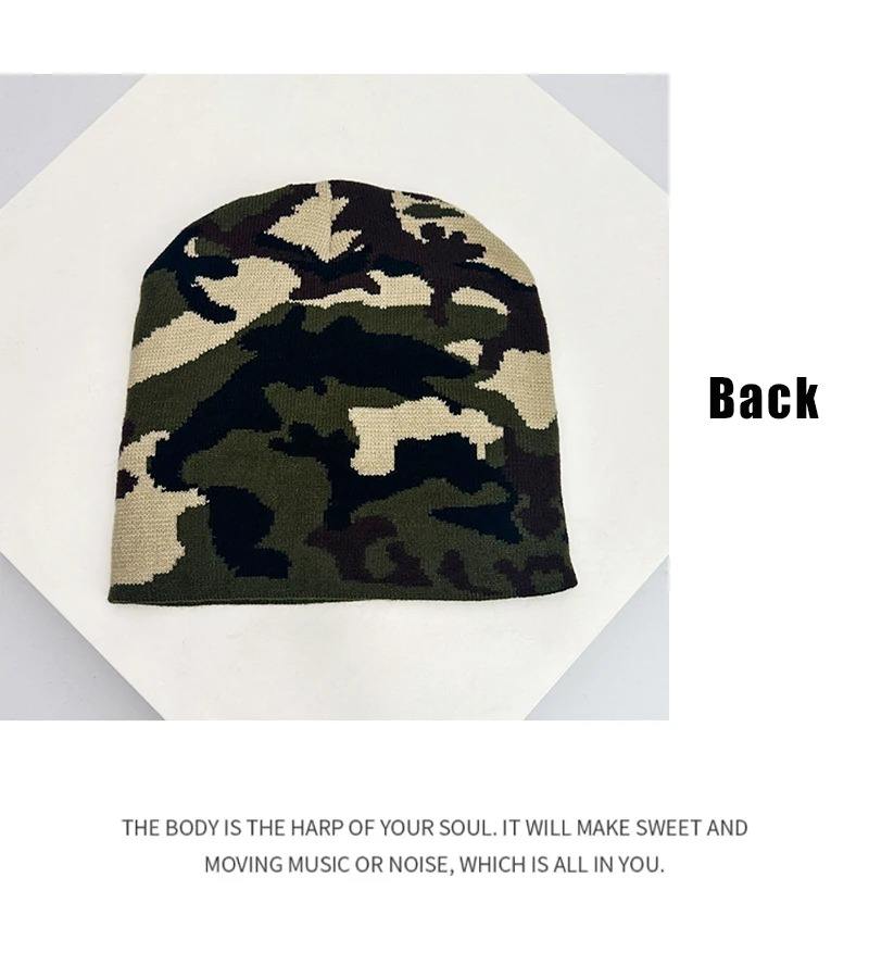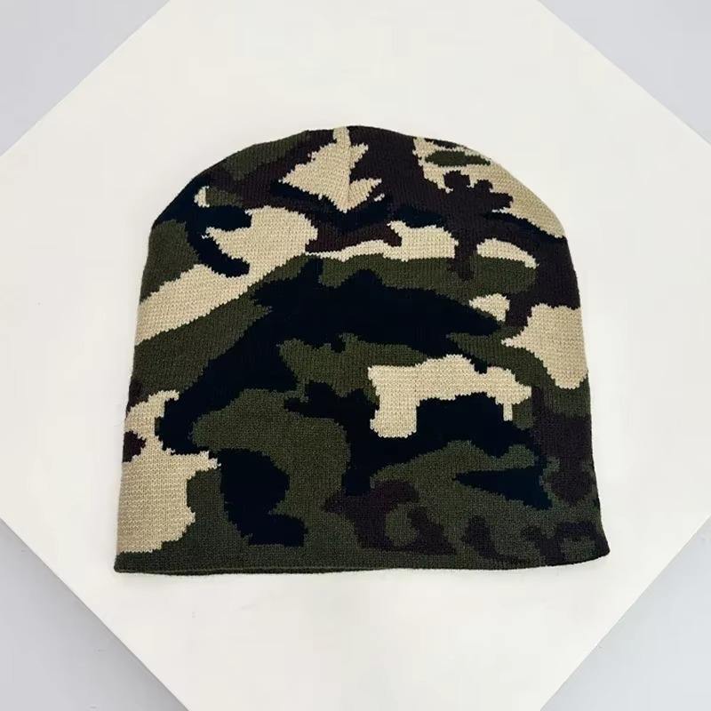หมวกถักนิตติ้งลายพรางสไตล์ยุโรปสำหรับฤดูใบไม้ร่วงฤดูหนาว