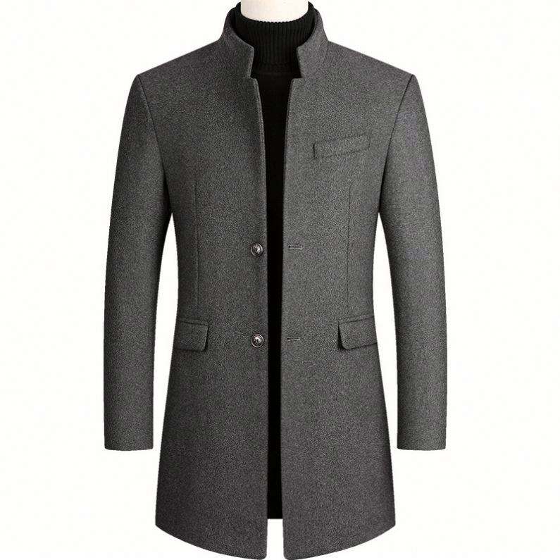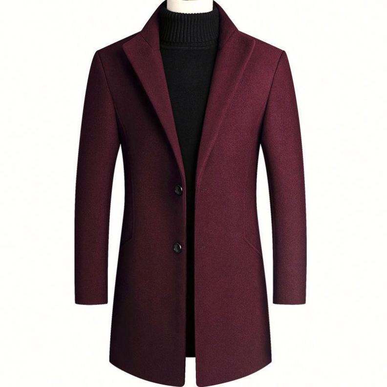 เสื้อโค้ทขนสัตว์ของผู้ชายแฟชั่นใหม่ฤดูใบไม้ร่วงฤดูหนาวเสื้อโค้ทแบบเปิดลงปกสีทึบเรียบง่ายขนาดพลัสไซส์เสื้อโค้ทลำลองขนสุนัขจิ้งจอก