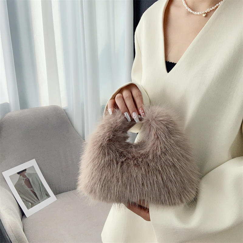กระเป๋าผ้าโพลีเอสเตอร์บุขนจิ้งจอกเทียมใหม่ฤดูใบไม้ร่วงฤดูหนาวพร้อมซิปปิด
