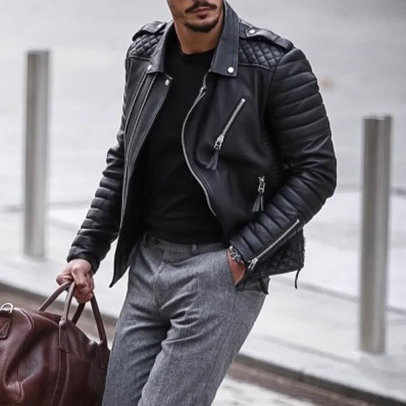 เสื้อแจ็คเก็ตนักขี่จักรยานปกคอเสื้อหนังแท้สำหรับผู้ชายใหม่ฤดูใบไม้ร่วงฤดูหนาวเสื้อโค้ทหนังแท้สำหรับผู้ชายใส่ได้ทุกวัน