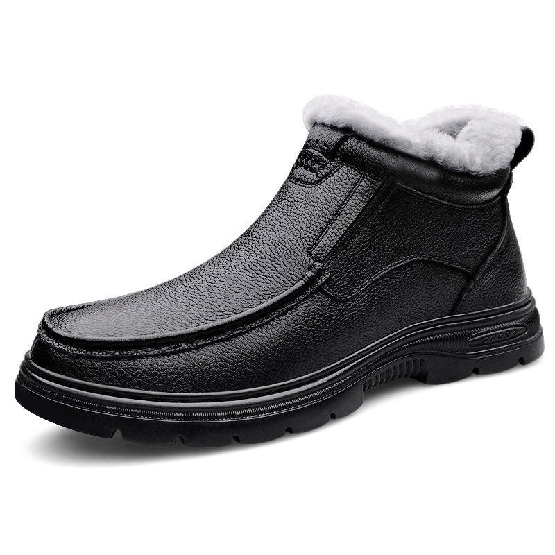 รองเท้าบูทผู้ชายแบบใหม่สำหรับฤดูใบไม้ร่วงและฤดูหนาว บุผ้ากำมะหยี่ หนังวัวแท้ ระบายอากาศได้ดี กันลื่น อุ่นสบาย ขนาด 50 หลา