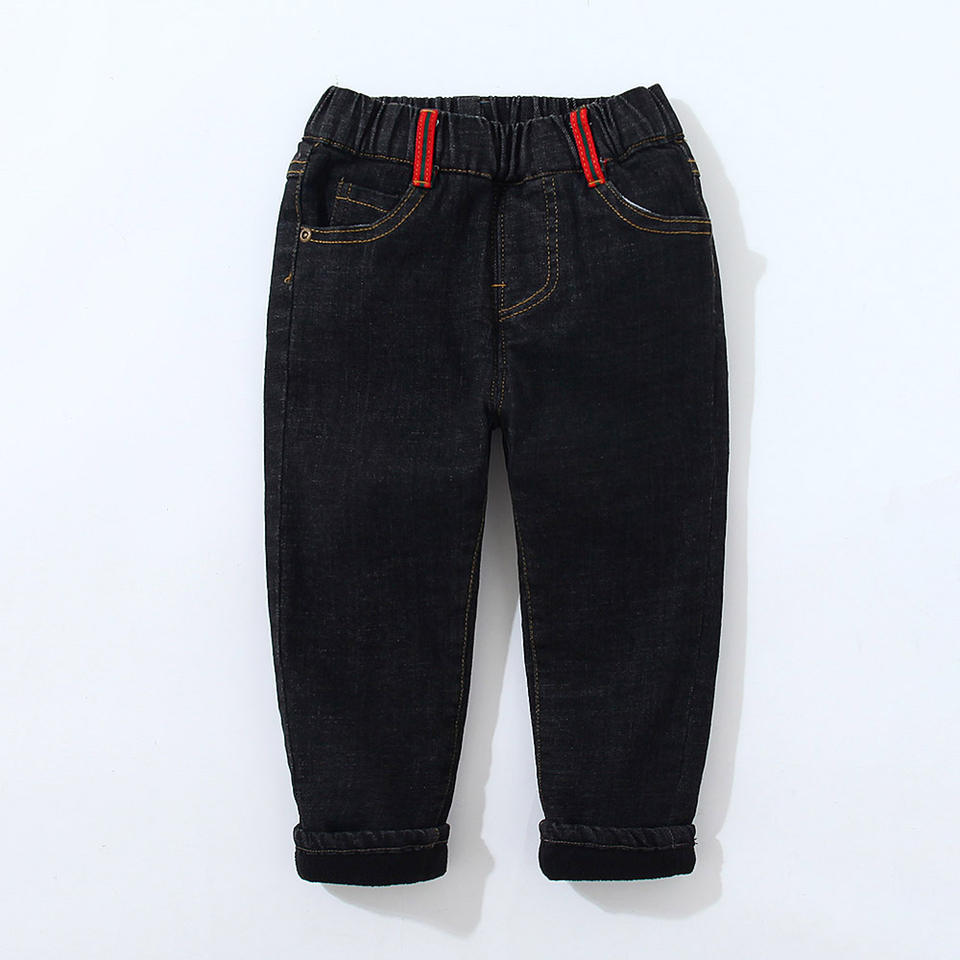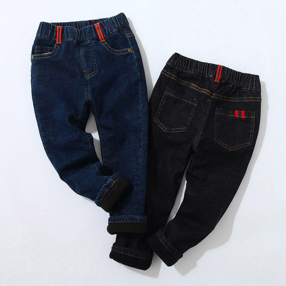 กางเกงยีนส์เด็กผู้ชายรุ่นใหม่สำหรับฤดูใบไม้ร่วงและฤดูหนาวบุผ้ากำมะหยี่เพื่อความอบอุ่น