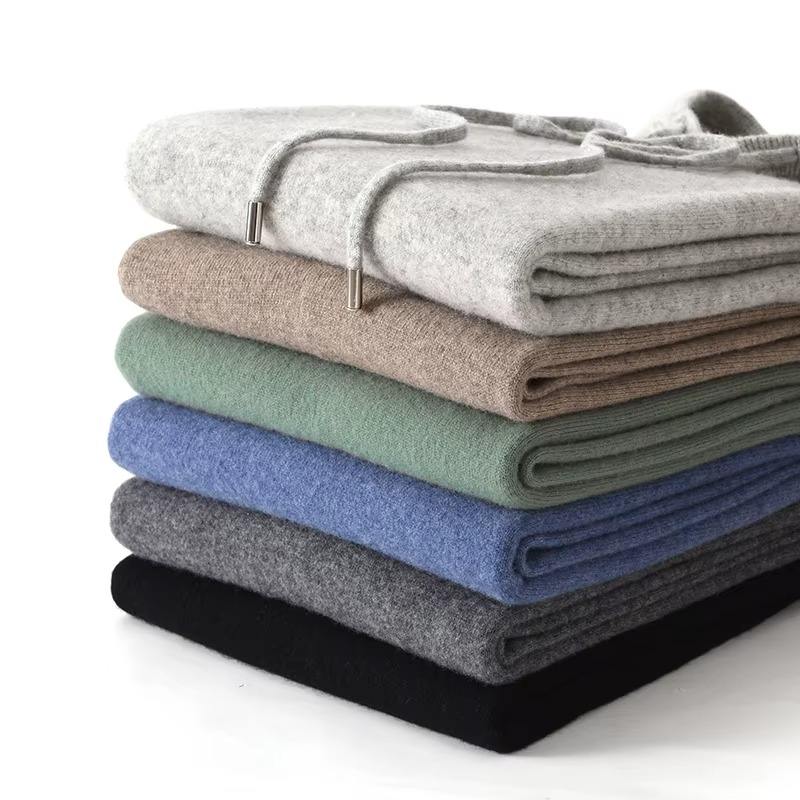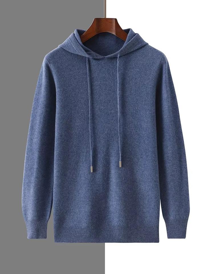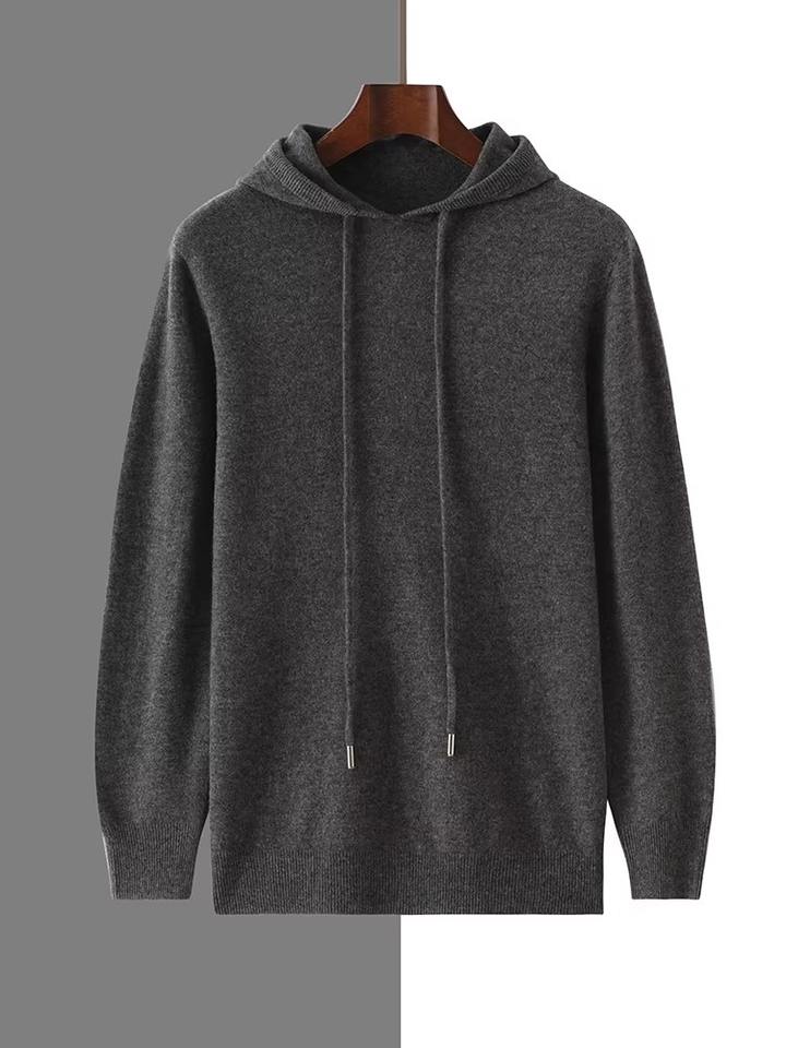 เสื้อสเวตเตอร์แขนยาวมีฮู้ดสำหรับผู้ชาย, ใหม่ฤดูใบไม้ร่วงฤดูหนาวผ้าวูลมีฮู้ดถักแบบสวมหัวมี100% ลำลองธุรกิจ