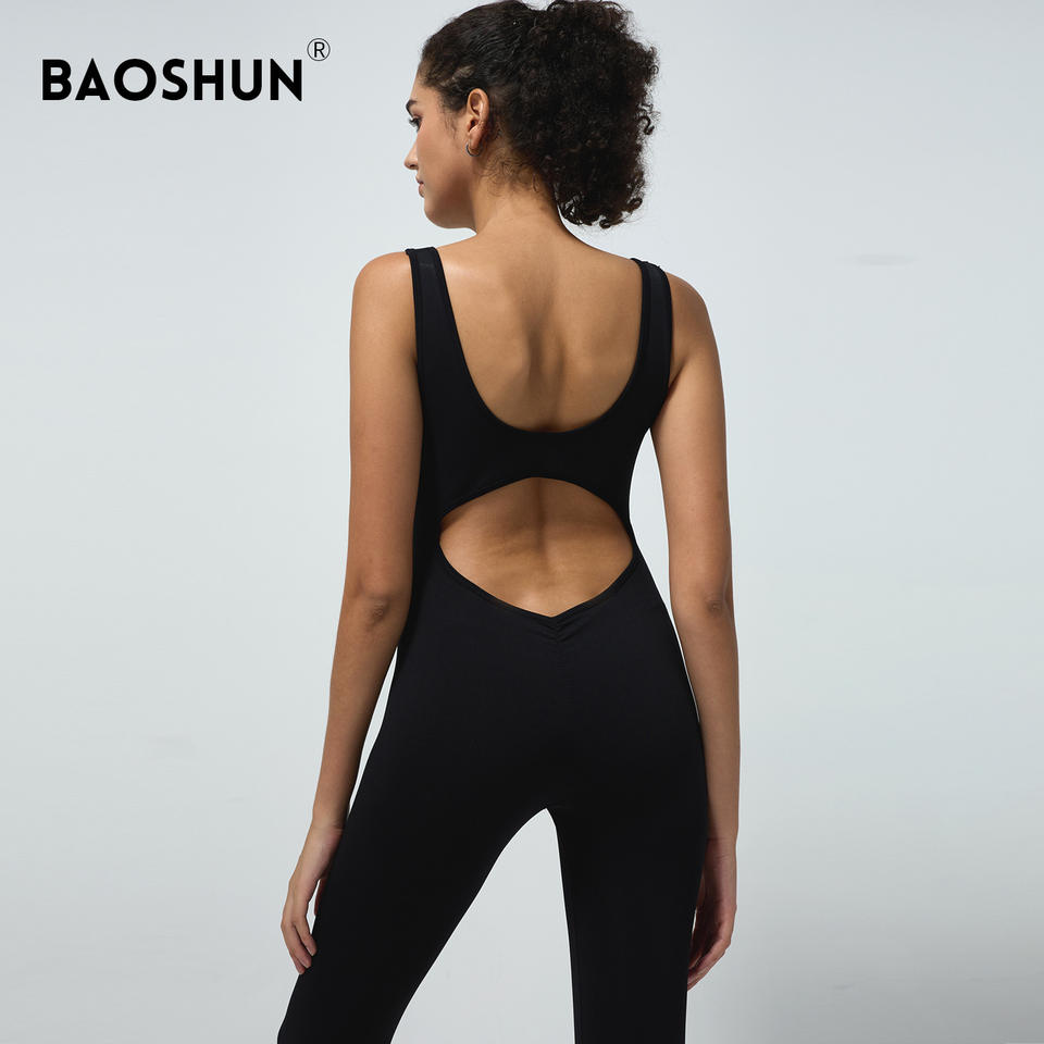 จั๊มสูทแบบชิ้นเดียวทรงบานชุดเล่นโยคะฟิตเนสรัดรูประบายอากาศสำหรับเล่นกีฬาฤดูใบไม้ร่วงฤดูหนาว