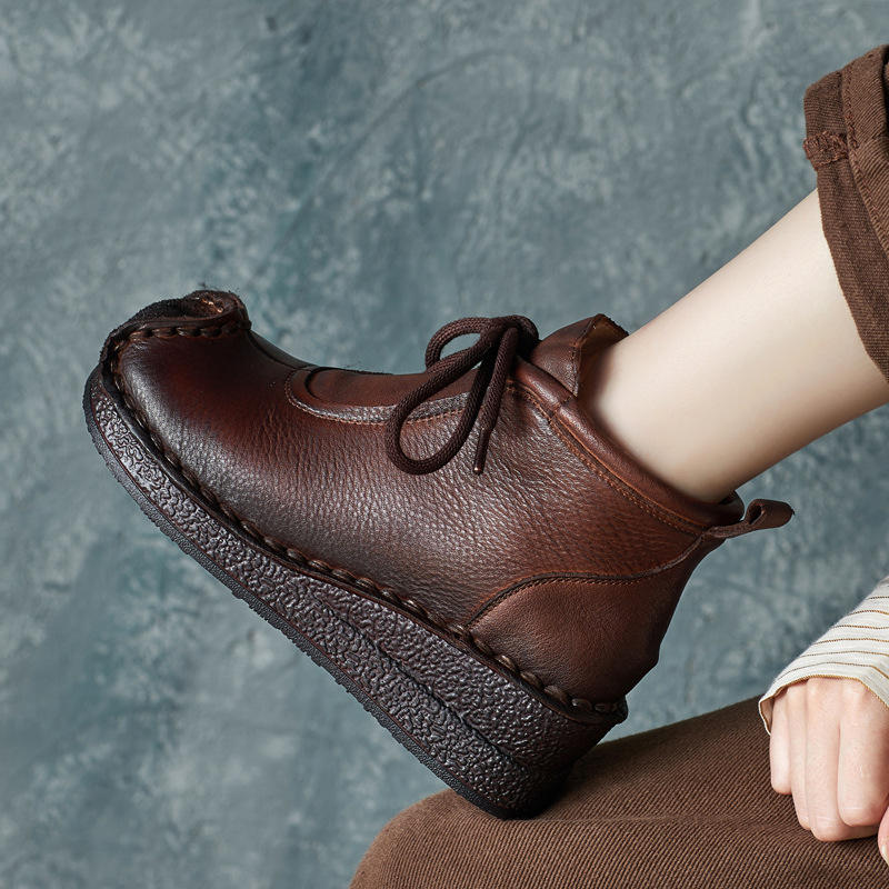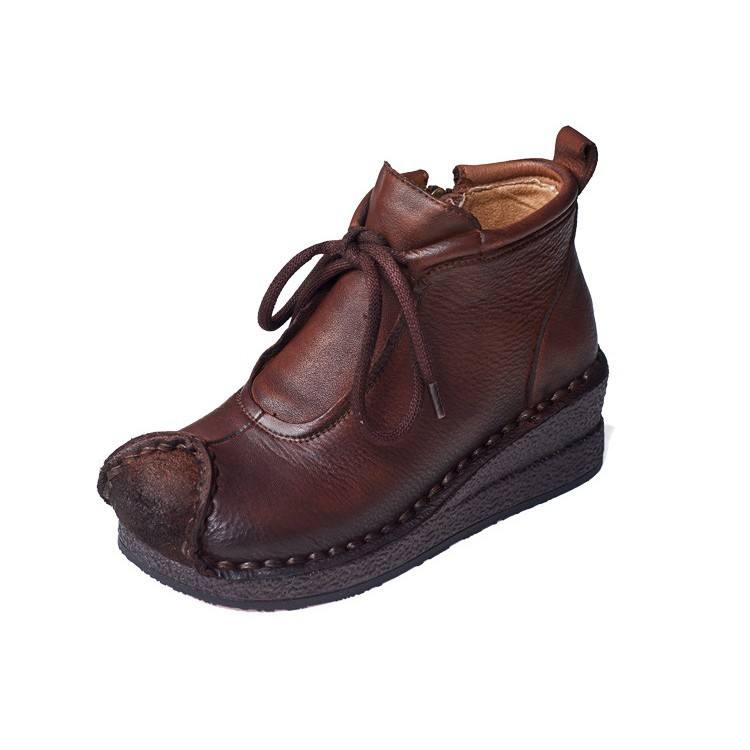 รองเท้าบูทหนังวัวทำมือสไตล์เรโทรสำหรับฤดูใบไม้ร่วงและฤดูหนาว ส้นแบบลิ่ม พื้นนุ่ม ด้านข้างนุ่มสบาย รองเท้าคุณแม่ กันน้ำ ความสูงระดับเข่า เพิ่มความสูง