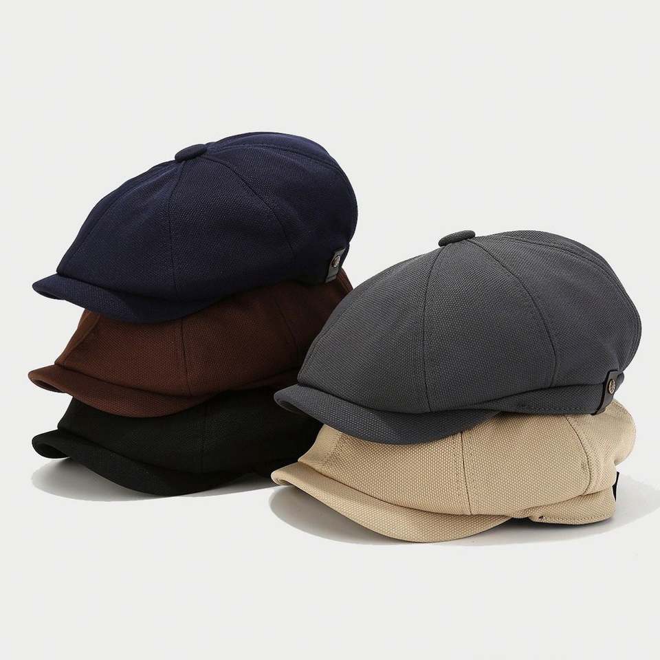 หมวกเบเร่ต์สีพื้นเรียบง่ายสไตล์เรโทรสำหรับฤดูใบไม้ร่วงและฤดูหนาว เหมาะสำหรับผู้ชายและผู้หญิง สวมใส่สบายๆ ตามเทรนด์แฟชั่นอังกฤษ หมวกทรงนิวส์บอยสำหรับกิจกรรมกลางแจ้ง