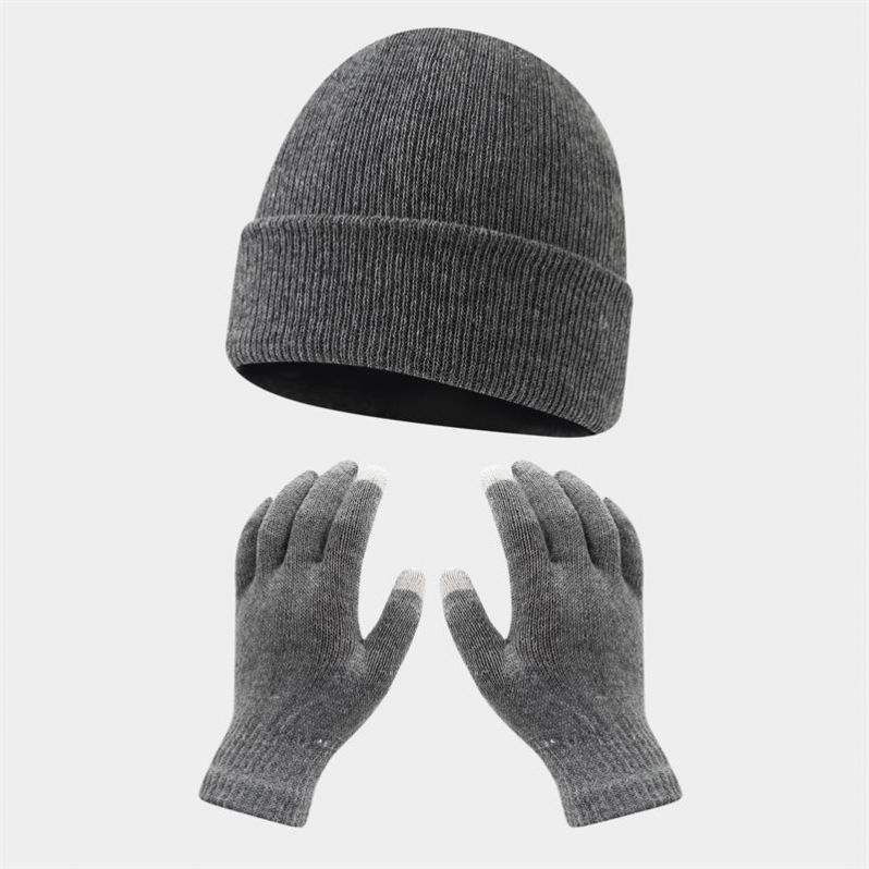 หมวกสกีกันหนาวหมวกบีนนี่ถักอะคริลิคหน้าจอสัมผัสสีทึบฤดูใบไม้ร่วงฤดูหนาว
