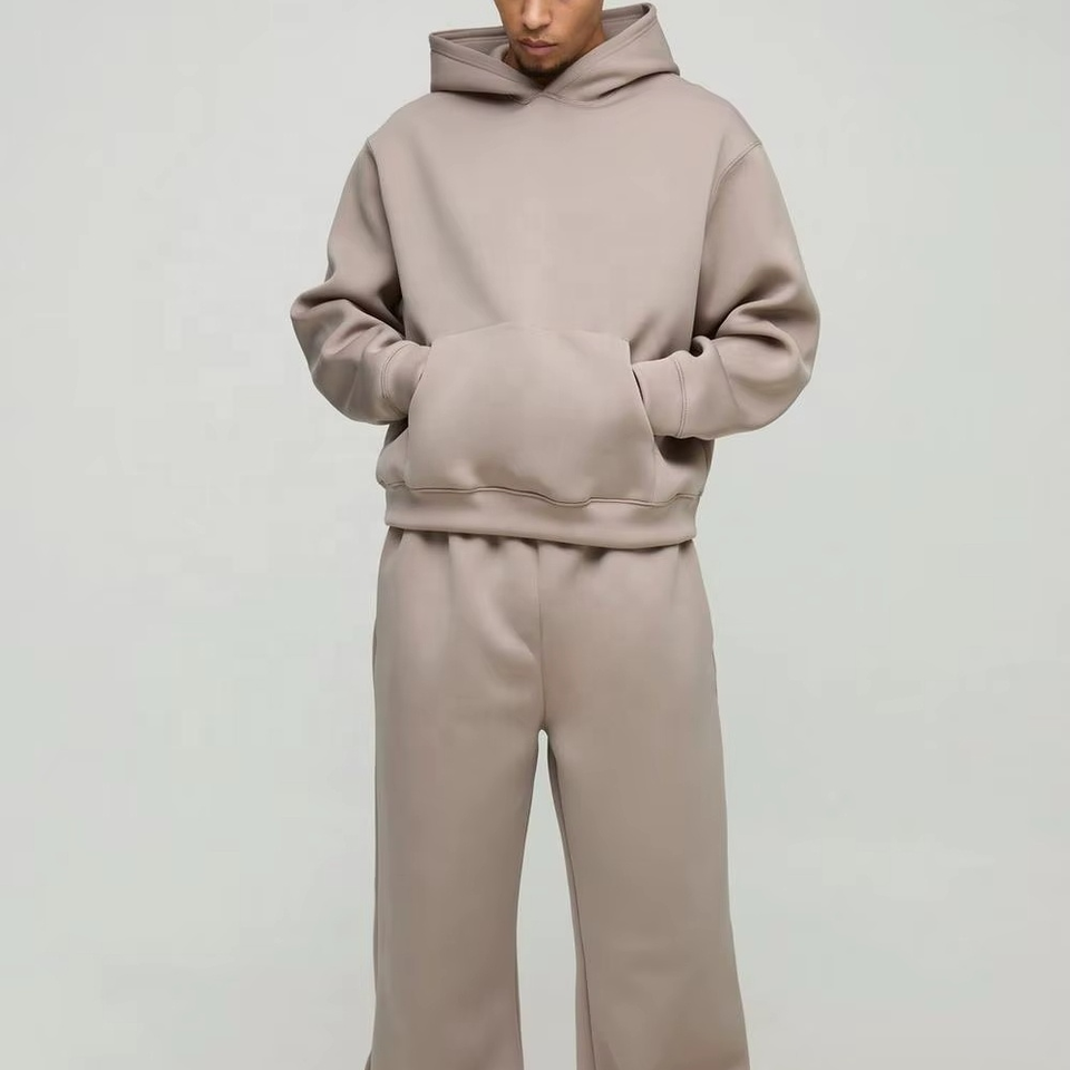 ฤดูใบไม้ร่วงฤดูหนาวชุดเสื้อกีฬาผู้ชายมีฮู้ดระบายอากาศได้แห้งเร็วสไตล์ยุโรปอเมริกันสีทึบบุขนแกะลำลอง